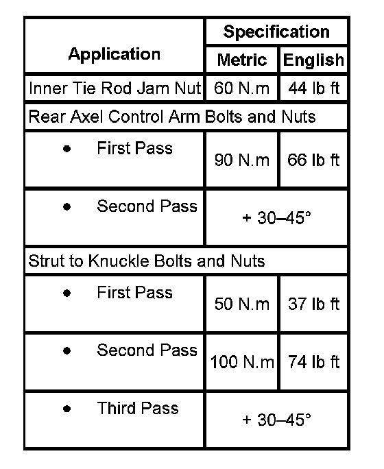 Fastener Tightening Specifications: