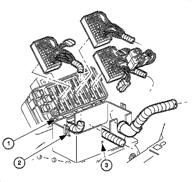 8. Push in the tabs (3) on the end of the fuse block case. Roll back the fuse block (1).