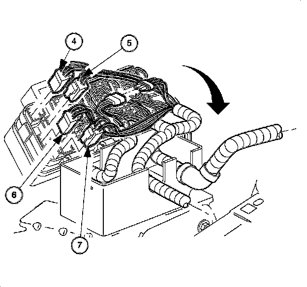 7. Connect the electrical connectors (4, 5, 6, 7) to the fuse block.