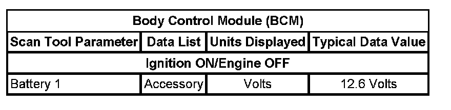 Normal Scan Tool Data Values - Body Control Module (BCM)
