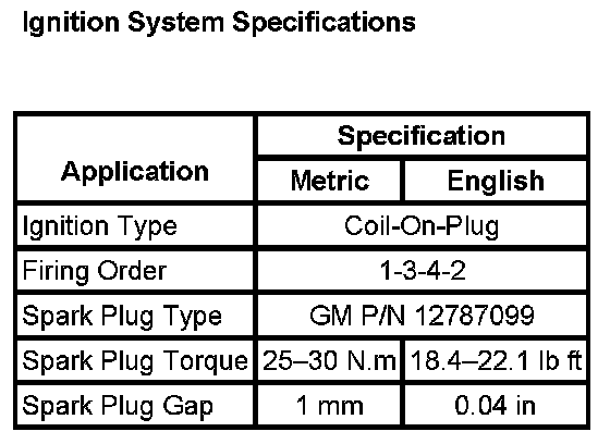 Ignition System Specifications: