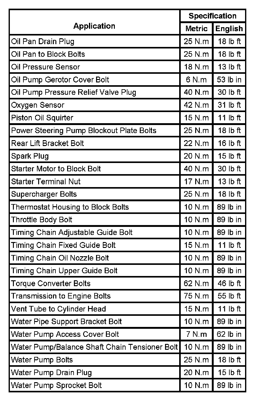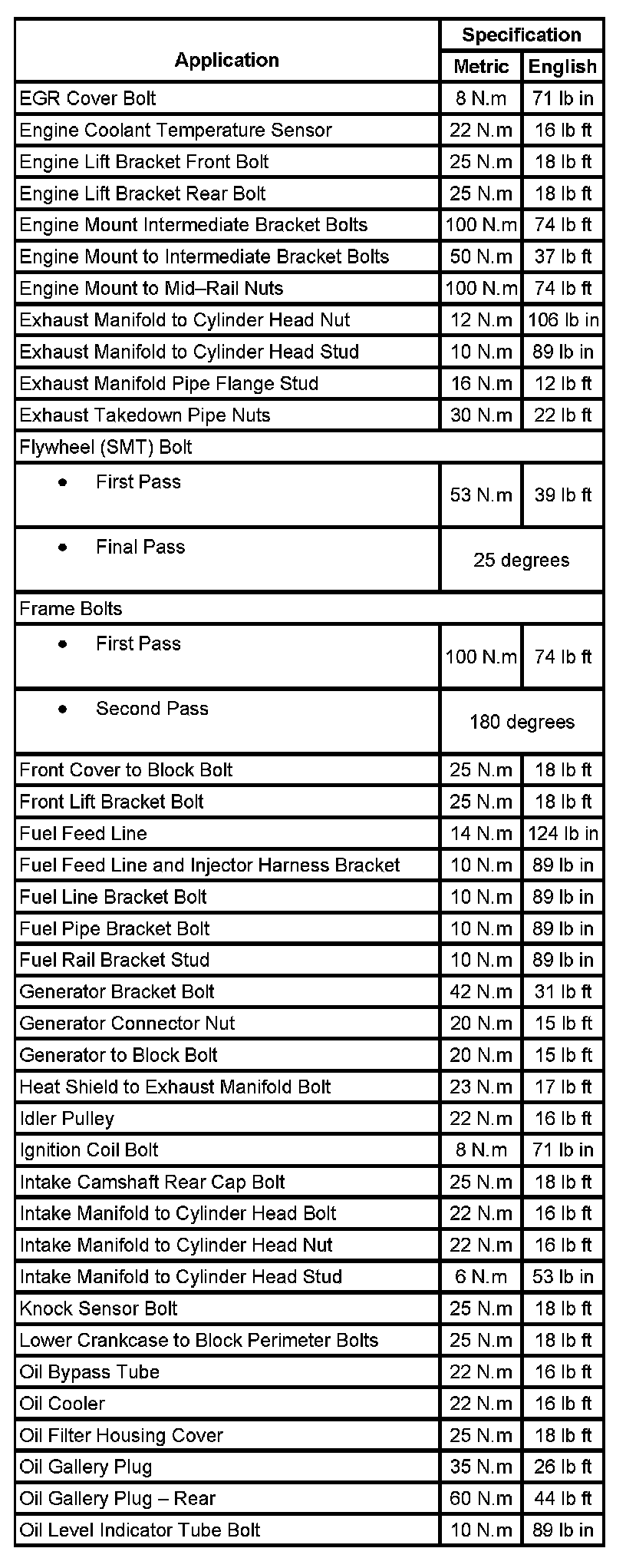 Fastener Tightening Specifications: