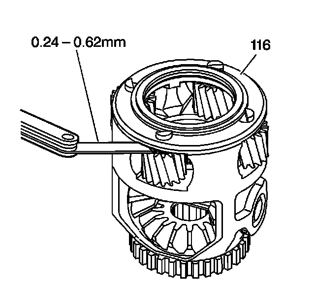 2. If the clearance is out of specification, replace the differential assembly (116).