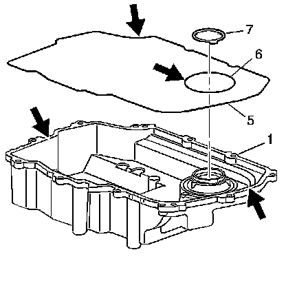 1. Remove the side cover gaskets (5 and 6) and the thrust washer (7) from the side cover (1).