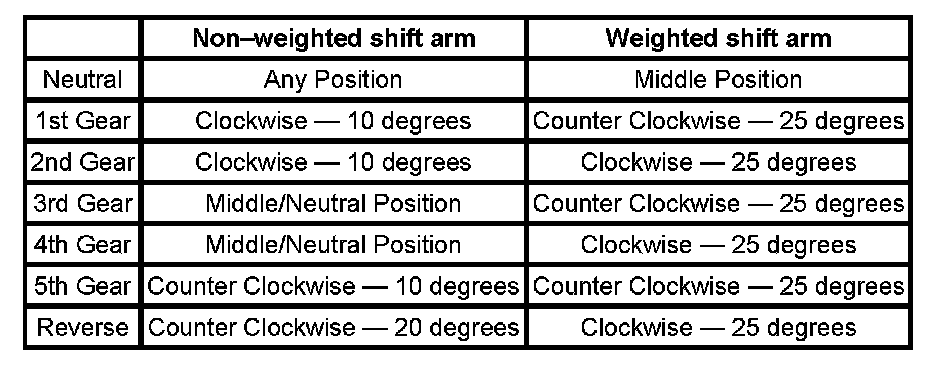 Shift Control Lever and Selector Control Lever Position/Rotation Specifications: