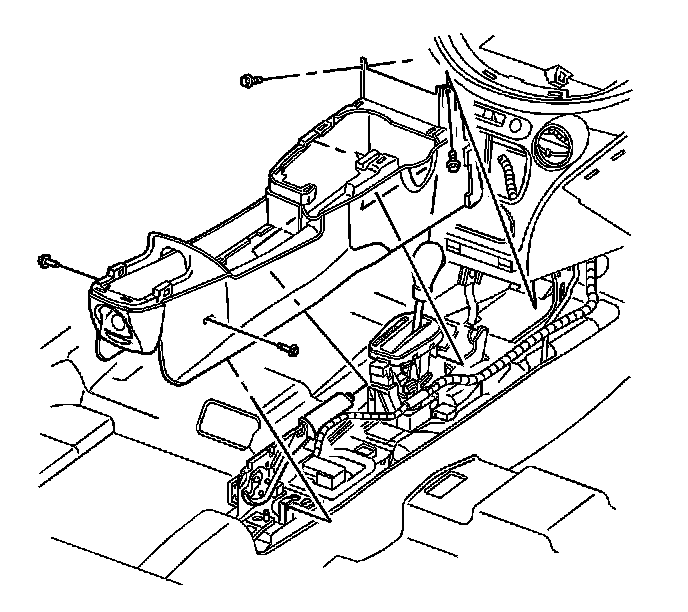 15. If equipped with an armrest assembly, remove the console compartment screws.