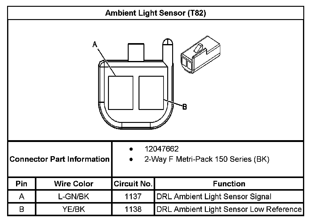 Ambient Light Sensor (With RPO Code T82):
