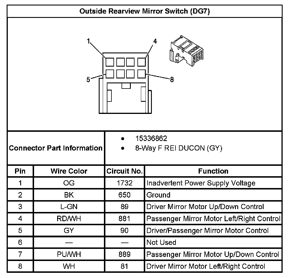 Outside Rearview Mirror Switch (With RPO Code DG7):