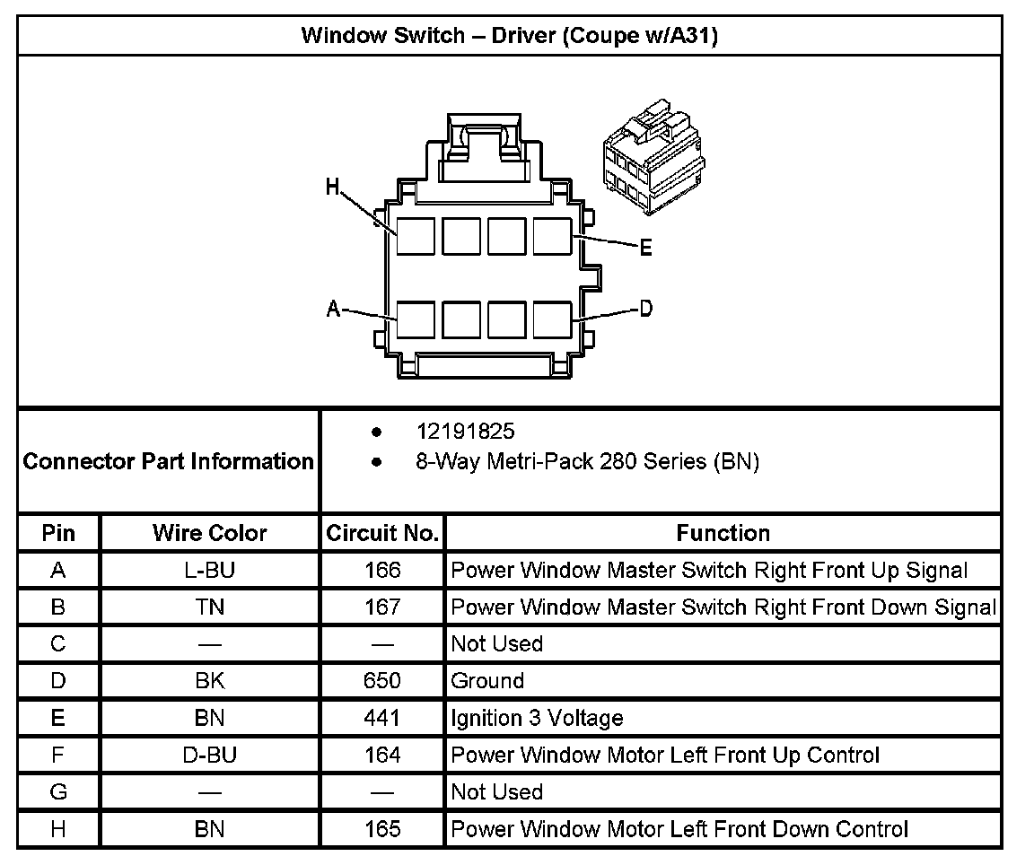 Window Switch - Driver (Coupe With RPO Code A31):