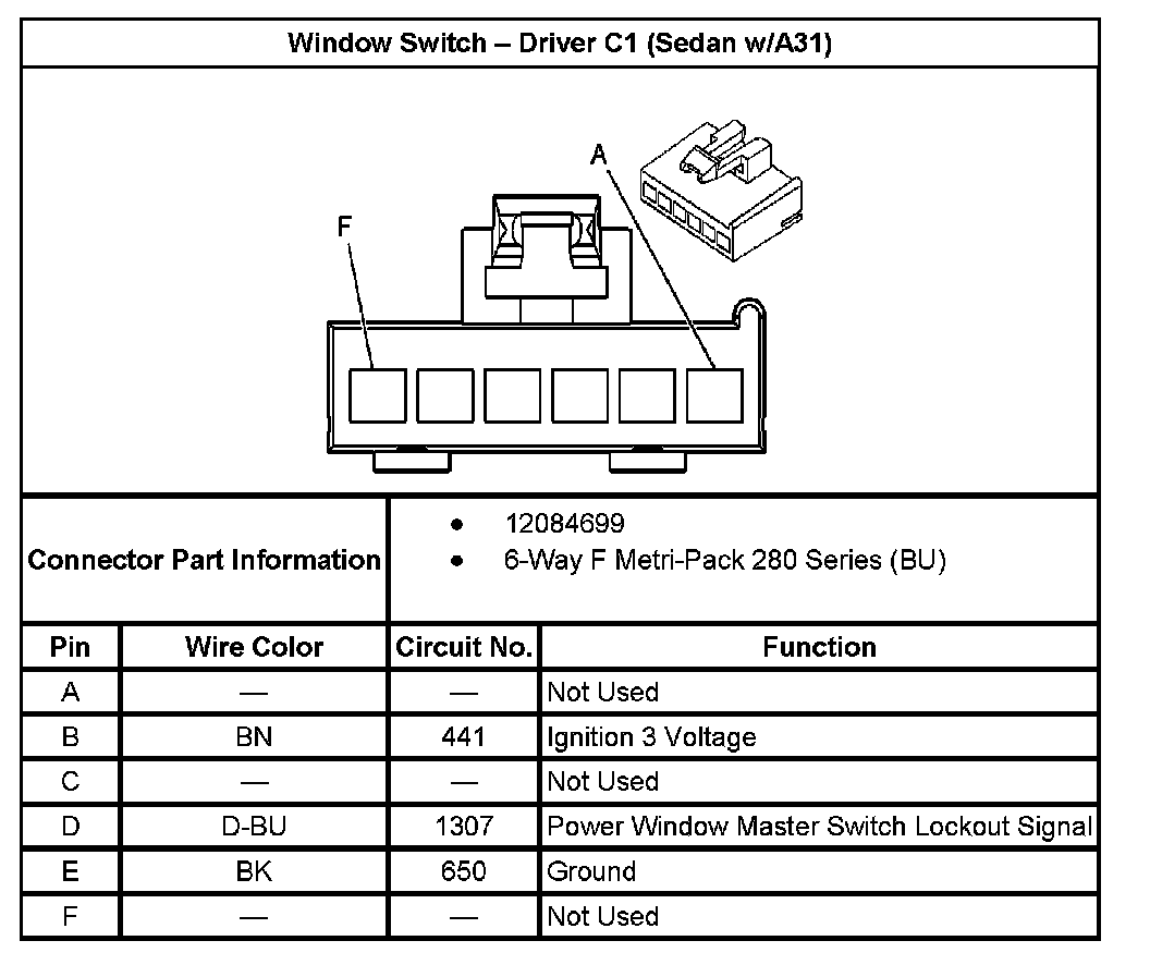 Window Switch - Driver C1 (Sedan With RPO Code A31):