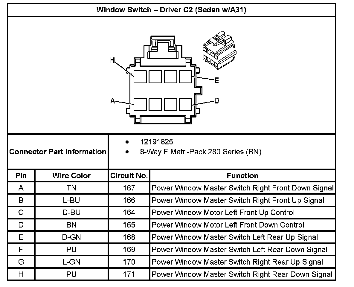 Window Switch - Driver C2 (Sedan With RPO Code A31):