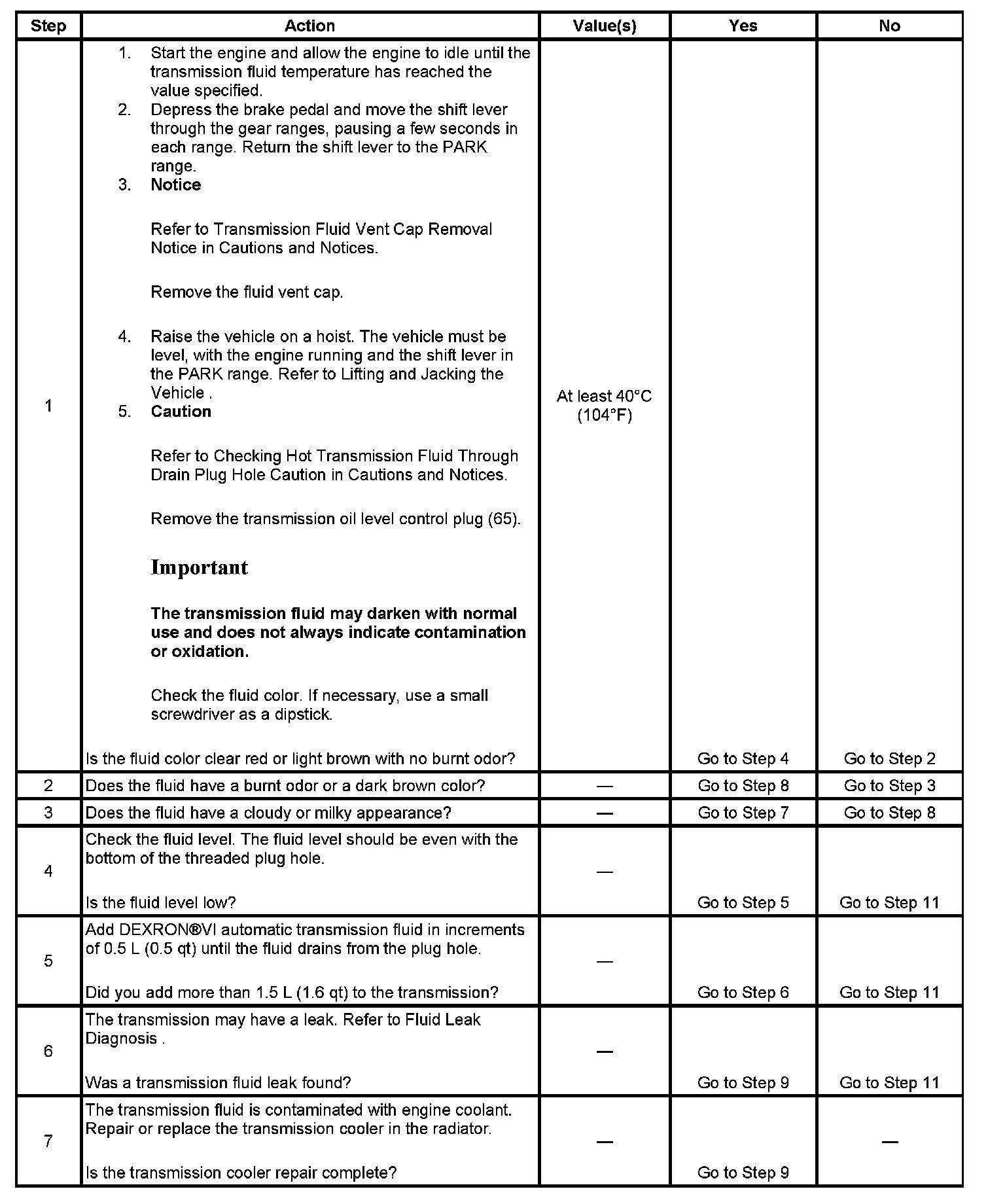 Transmission Fluid Checking Procedure