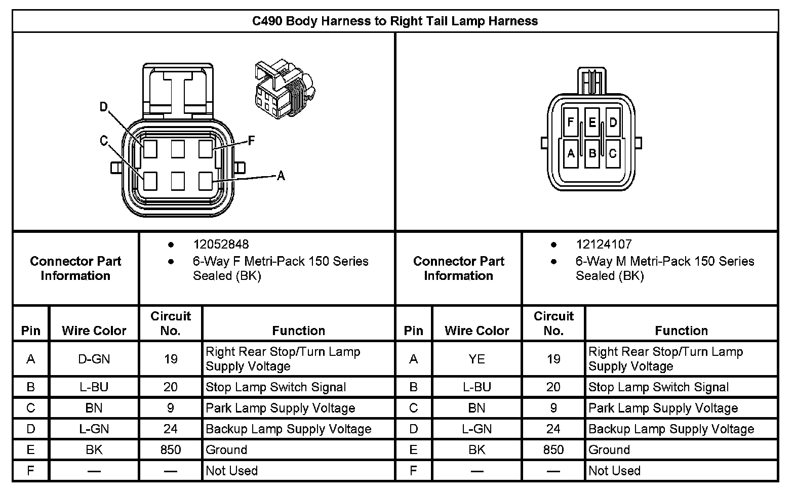 C490 Harness To Right Tail Lamp Harness:
