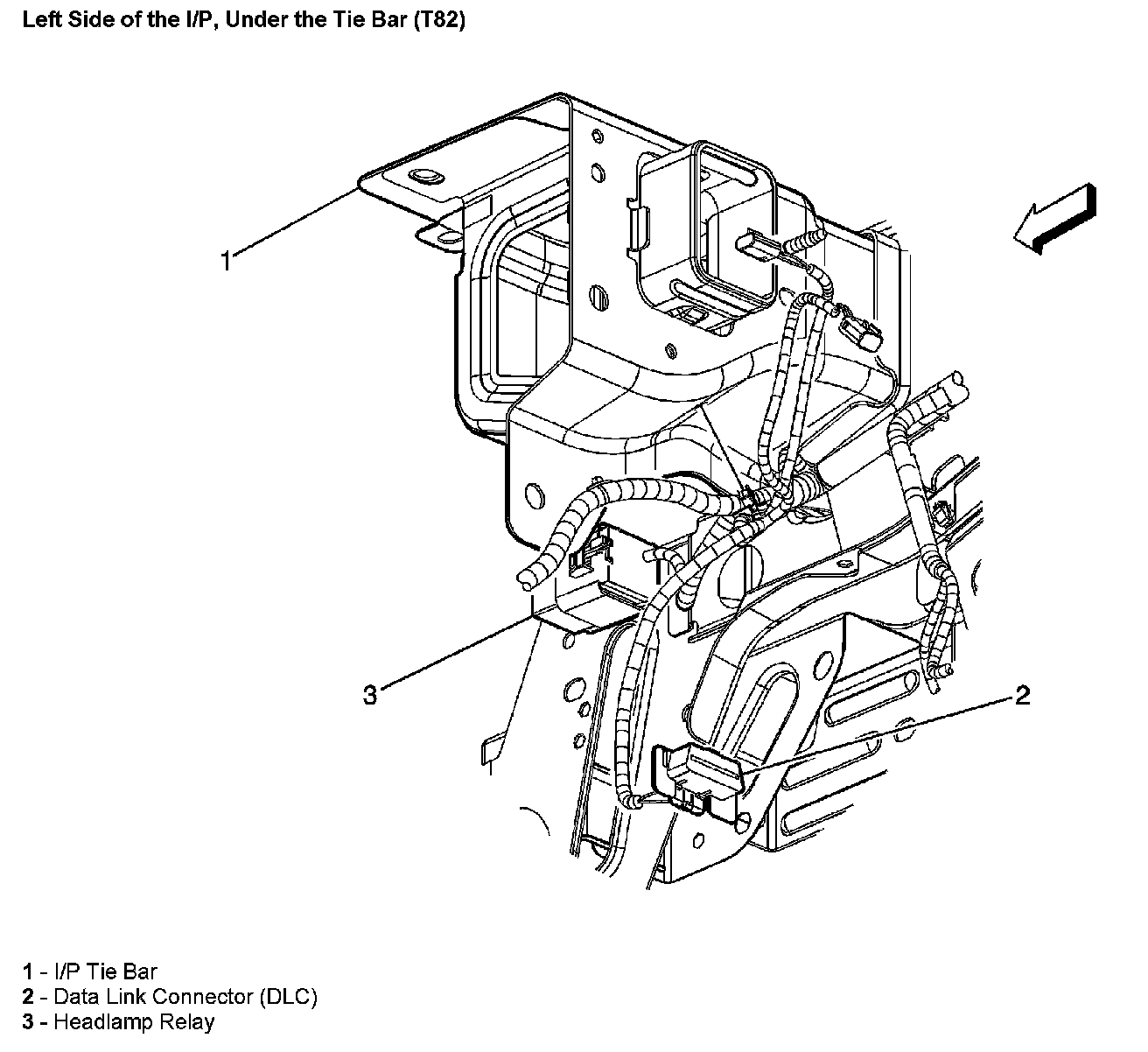 Left Side Of The I/P, Under The Tie Bar (With RPO Code T82):