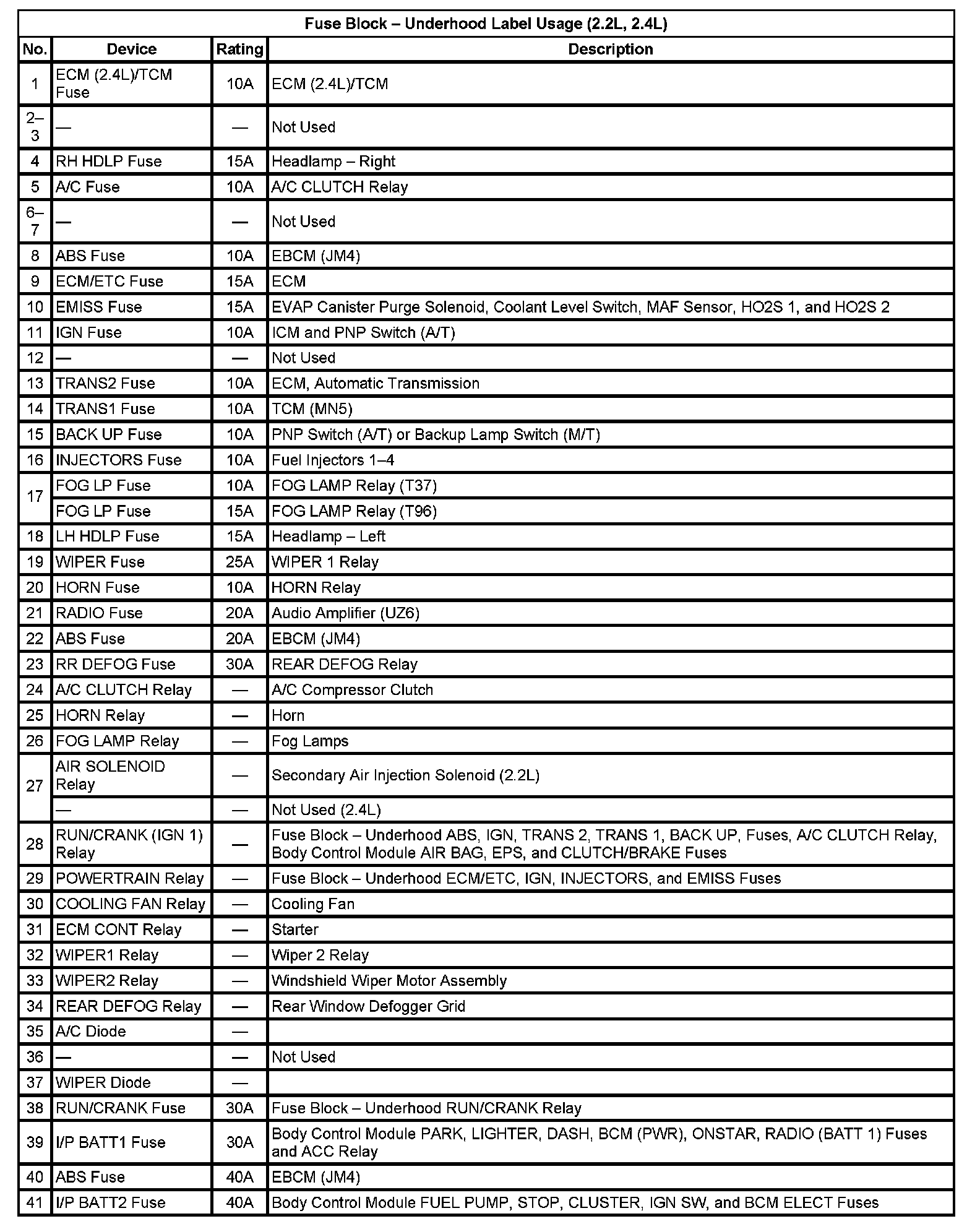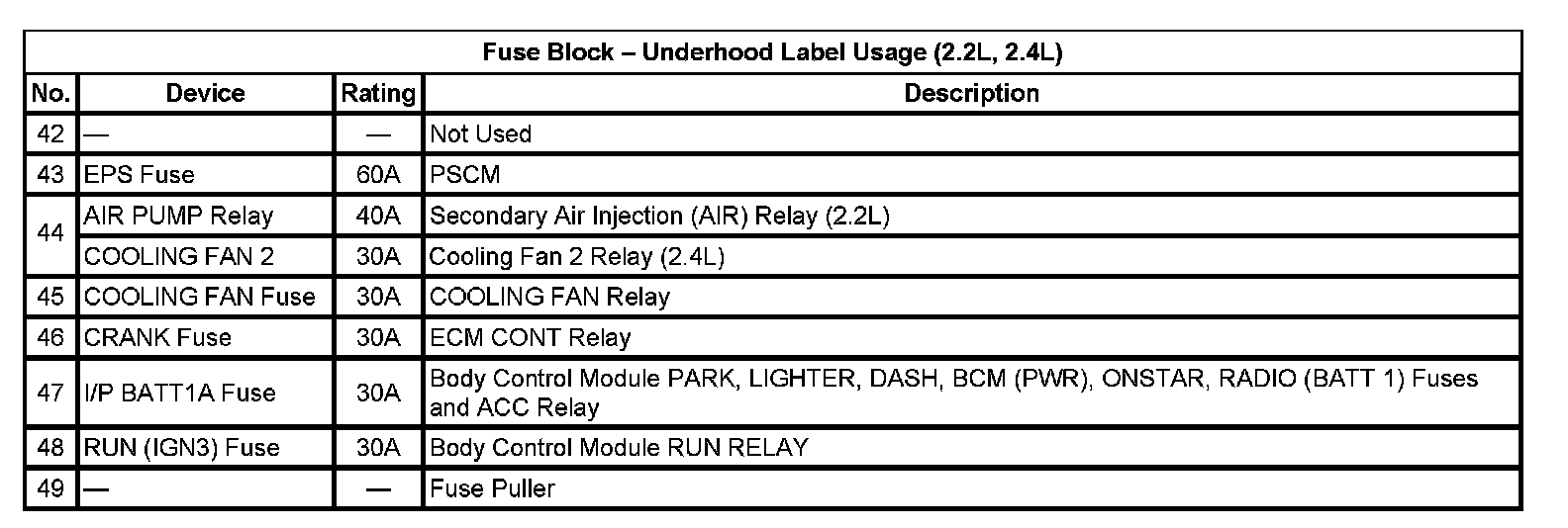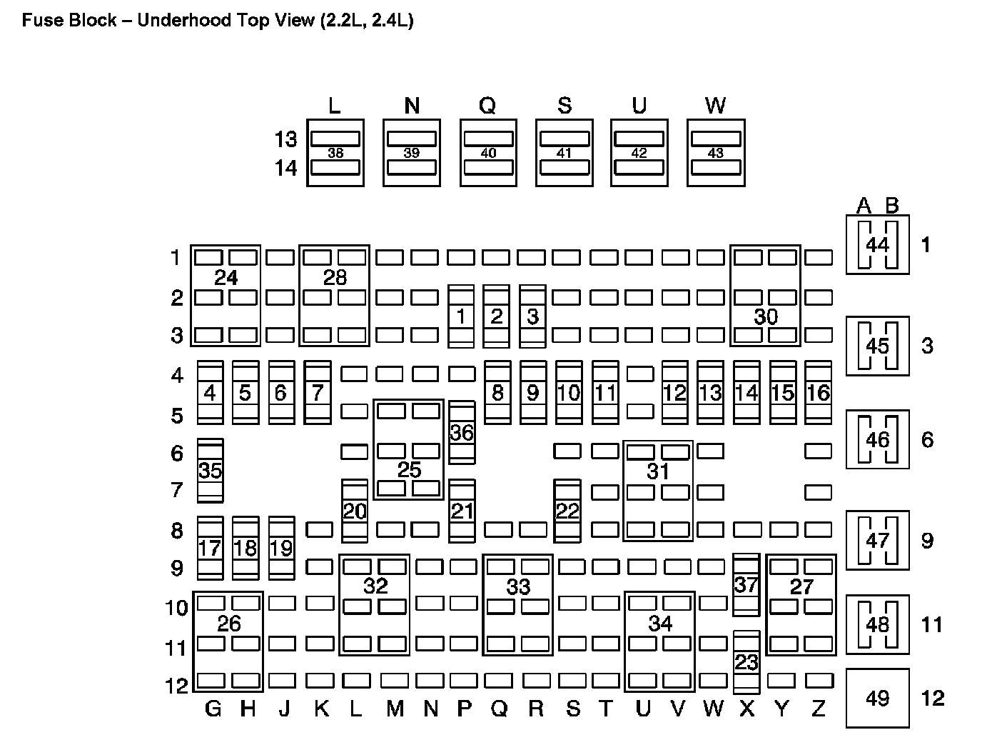 Fuse Block - Underhood Bottom View: