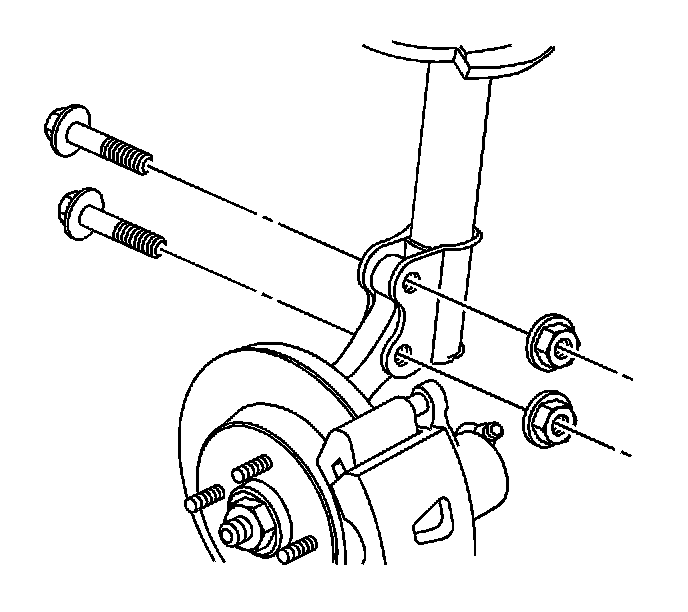2. Install the strut to knuckle bolts and nuts.
