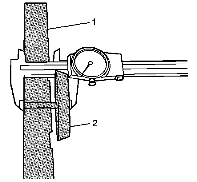 13. Tighten the thumbscrew on the J 44388-1 (2) to retain the J 44388-2 (1) gage rod.