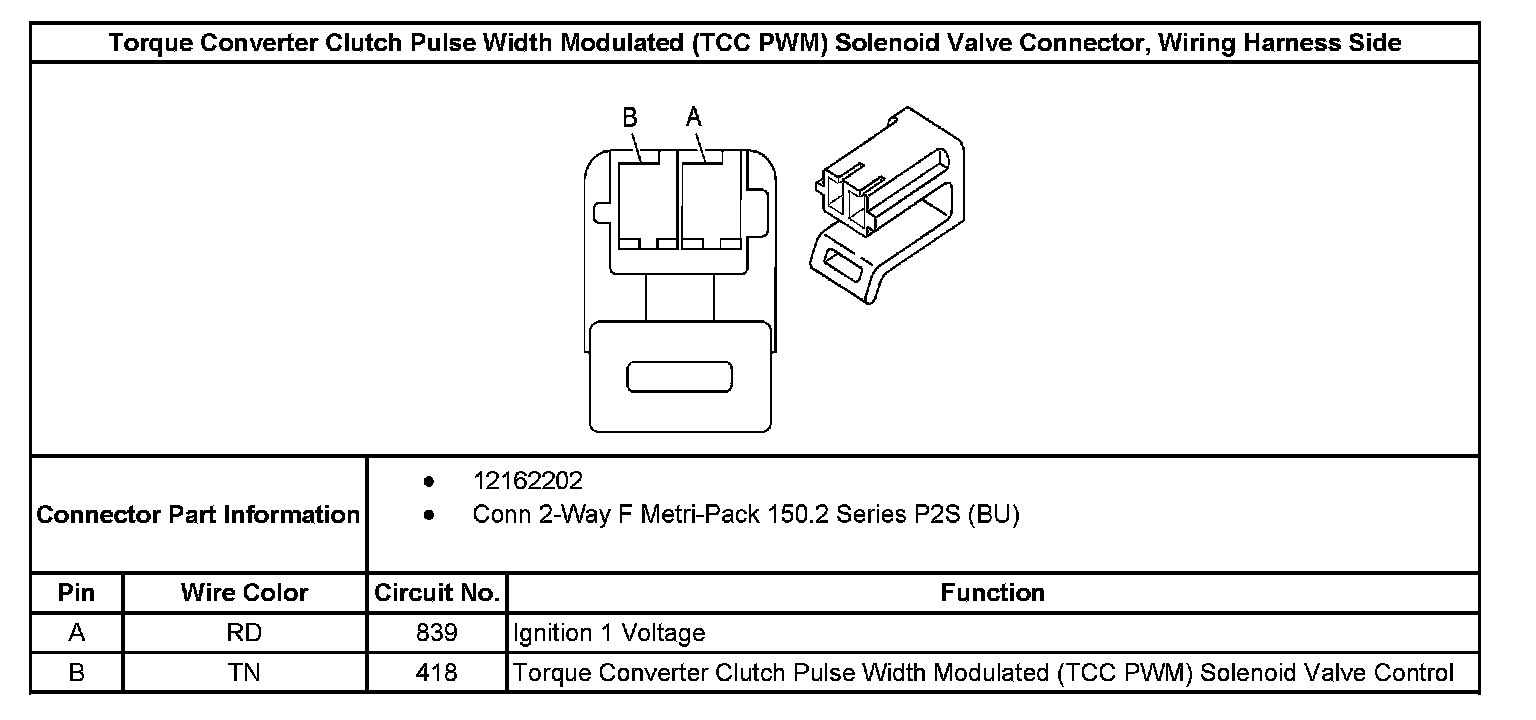 Torque Converter Clutch Pulse Width Modulated (TCC PWM) Solenoid Valve Connector, Wiring Harness Side: