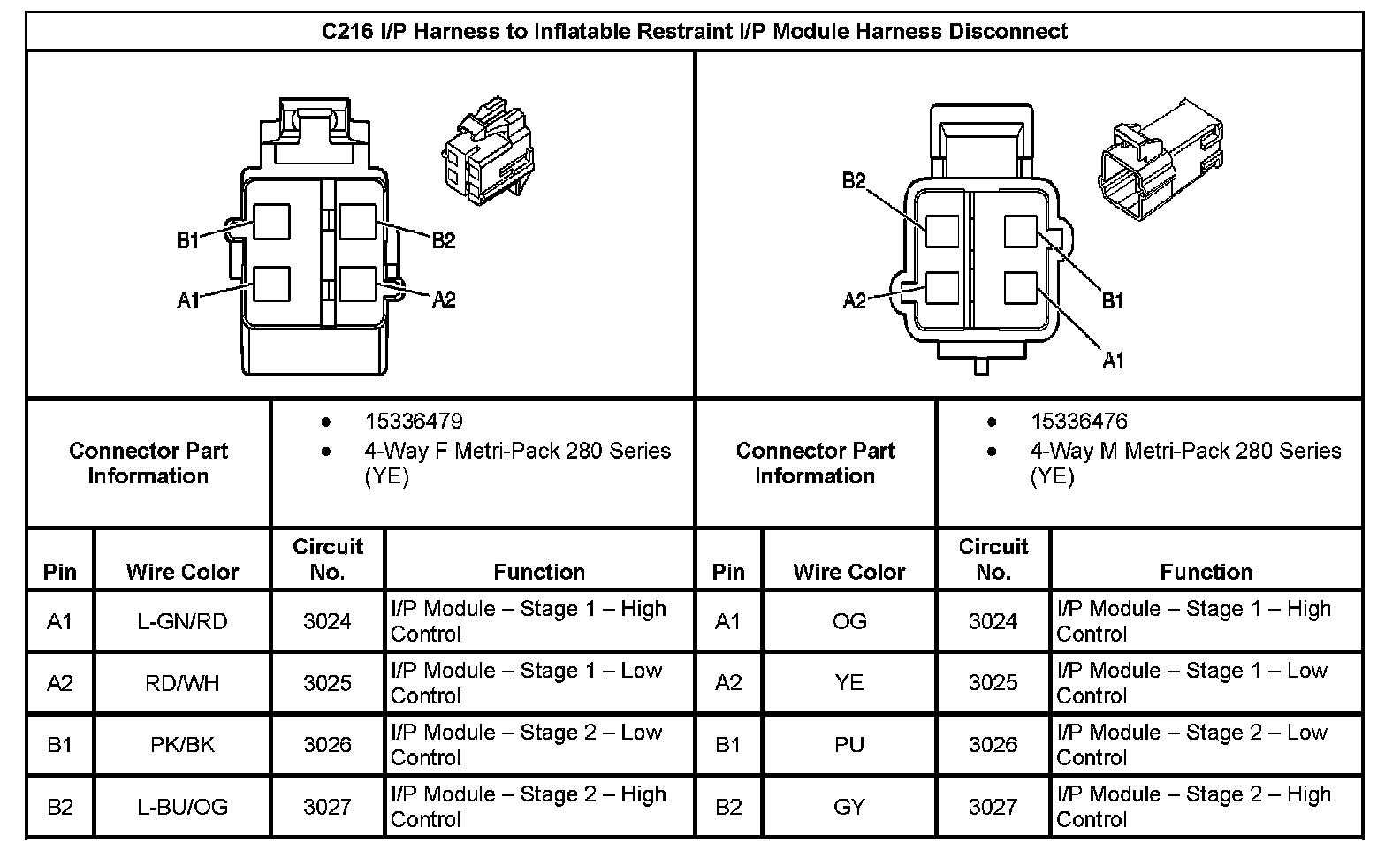 C216 I/P Harness To Inflatable Restraint I/P Module Harness Disconnect:
