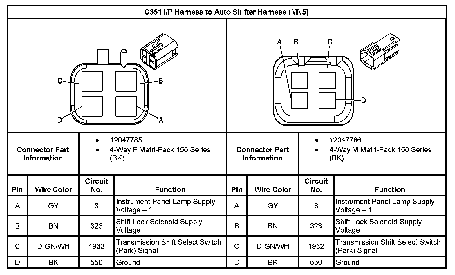 C351 I/P Harness To Auto Shifter Harness (With RPO Code MN5):
