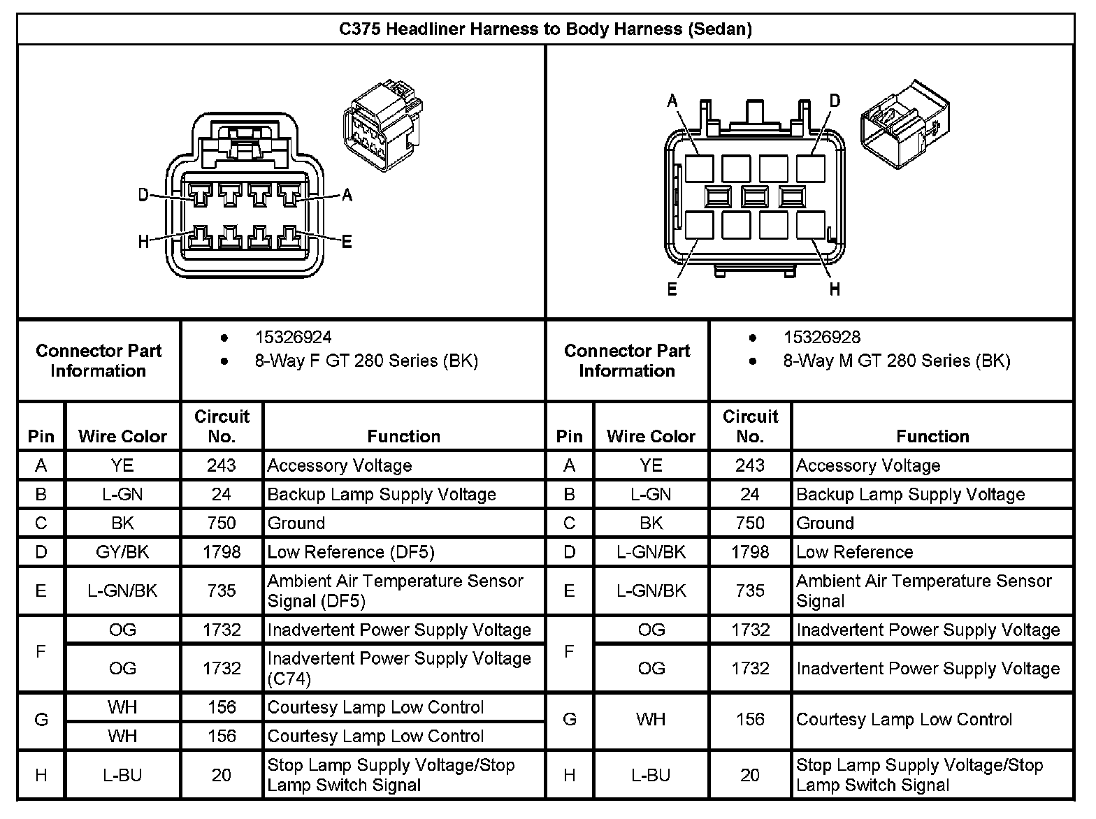 C375 Headliner Harness To Body Harness (Sedan):