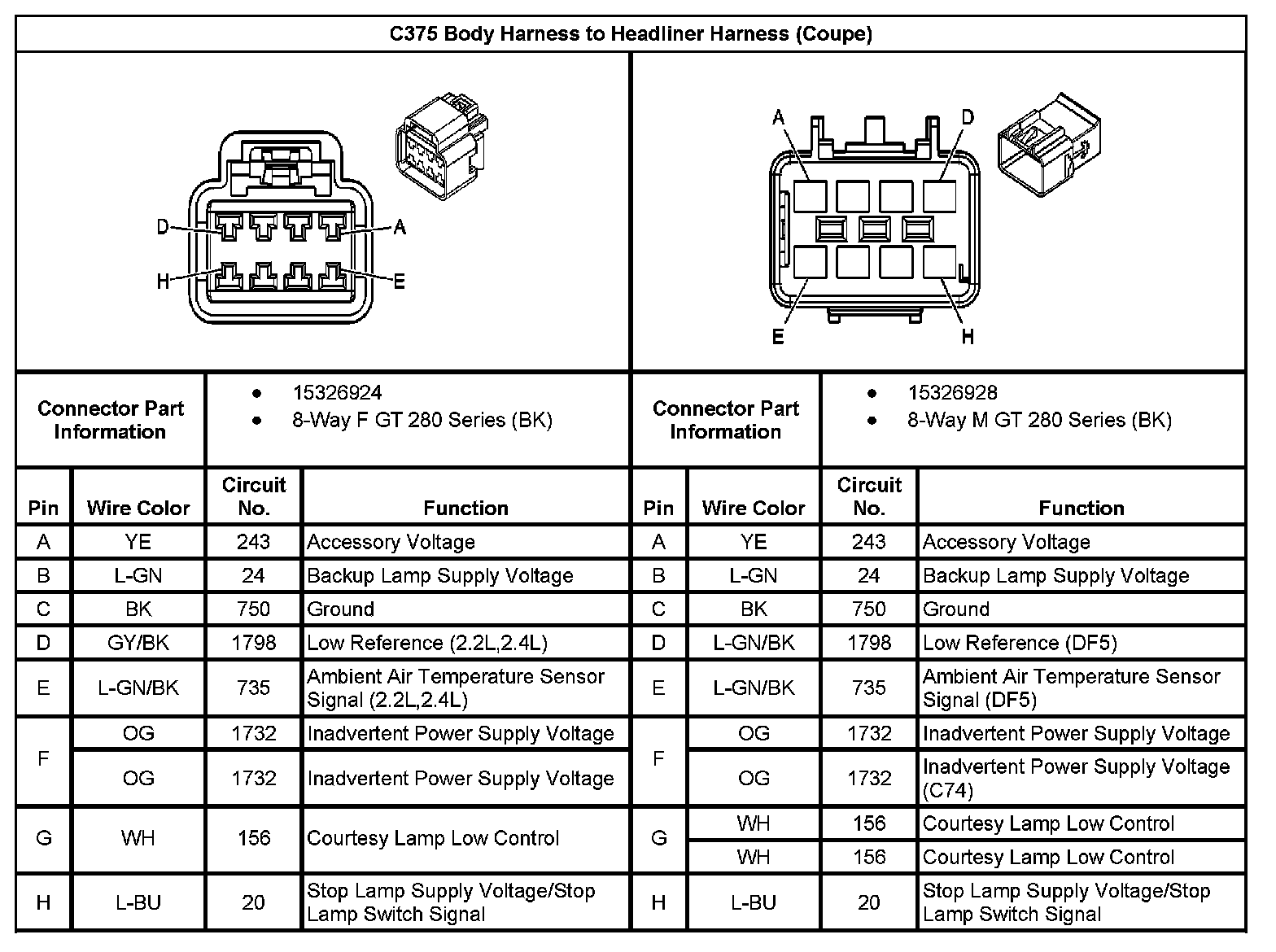 C375 Body Harness To Headliner Harness (Coupe):
