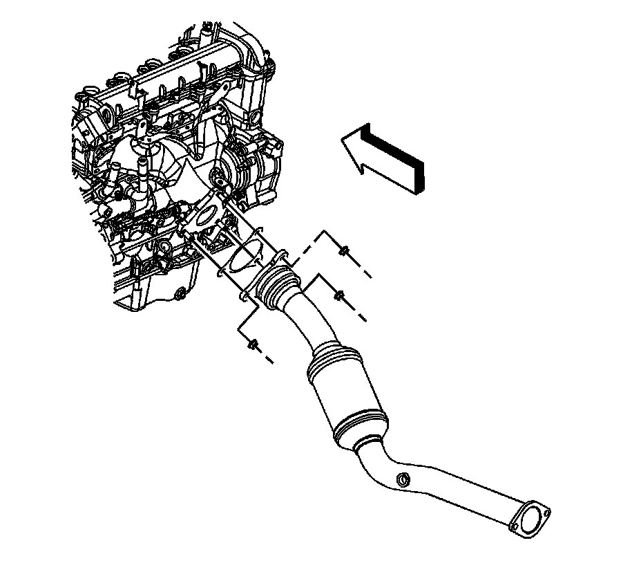 9. Pull the muffler pipe rearward and down until the studs are removed from the catalytic converter.