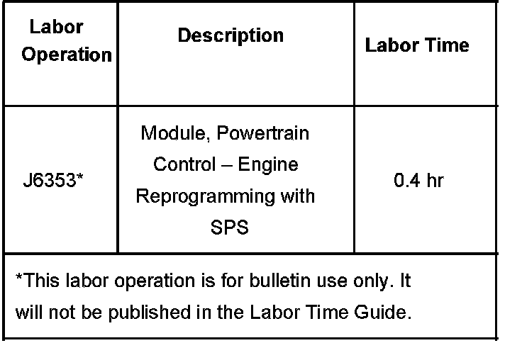 Reprogram the ECM with the latest calibrations if the above concern is encountered. An updated ECM calibration is now available to address this concern. This calibration, or any that follow, is designed to address this concern. Refer to Service Programming System (SPS) using the appropriate Service Information (SI) procedures. The new ECM calibrations will be available to dealerships as part of TIS2000 incremental satellite update version 1.0, which was broadcast to dealers on 01/08/2006. For the dealerships that use CDs, the CD version will be 1.0 for 2006, which will be mailed 01/12/2006. As always, make sure your Tech 2(R) is updated with the latest software version.