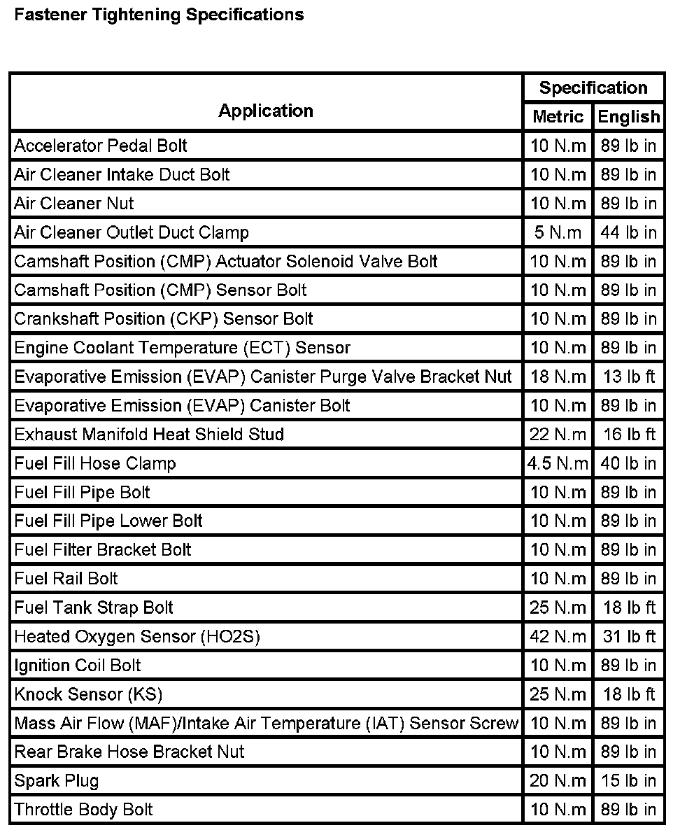 Fastener Tightening Specifications: