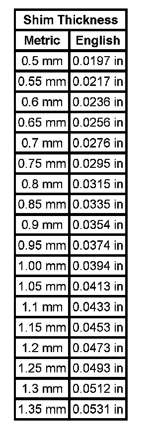 Shim Size Specifications