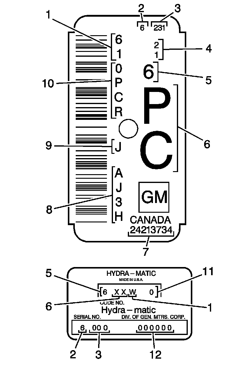 The information on the nameplate assists the technician in servicing the transmission and ordering replacement parts from a GM Parts Catalog.