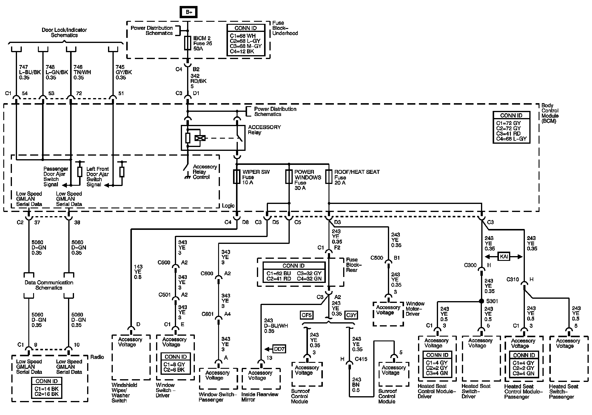 The locations for the Connectors, Grounds, Splices, and Grommets shown within these diagrams can be found via their numbers at Vehicle Locations.