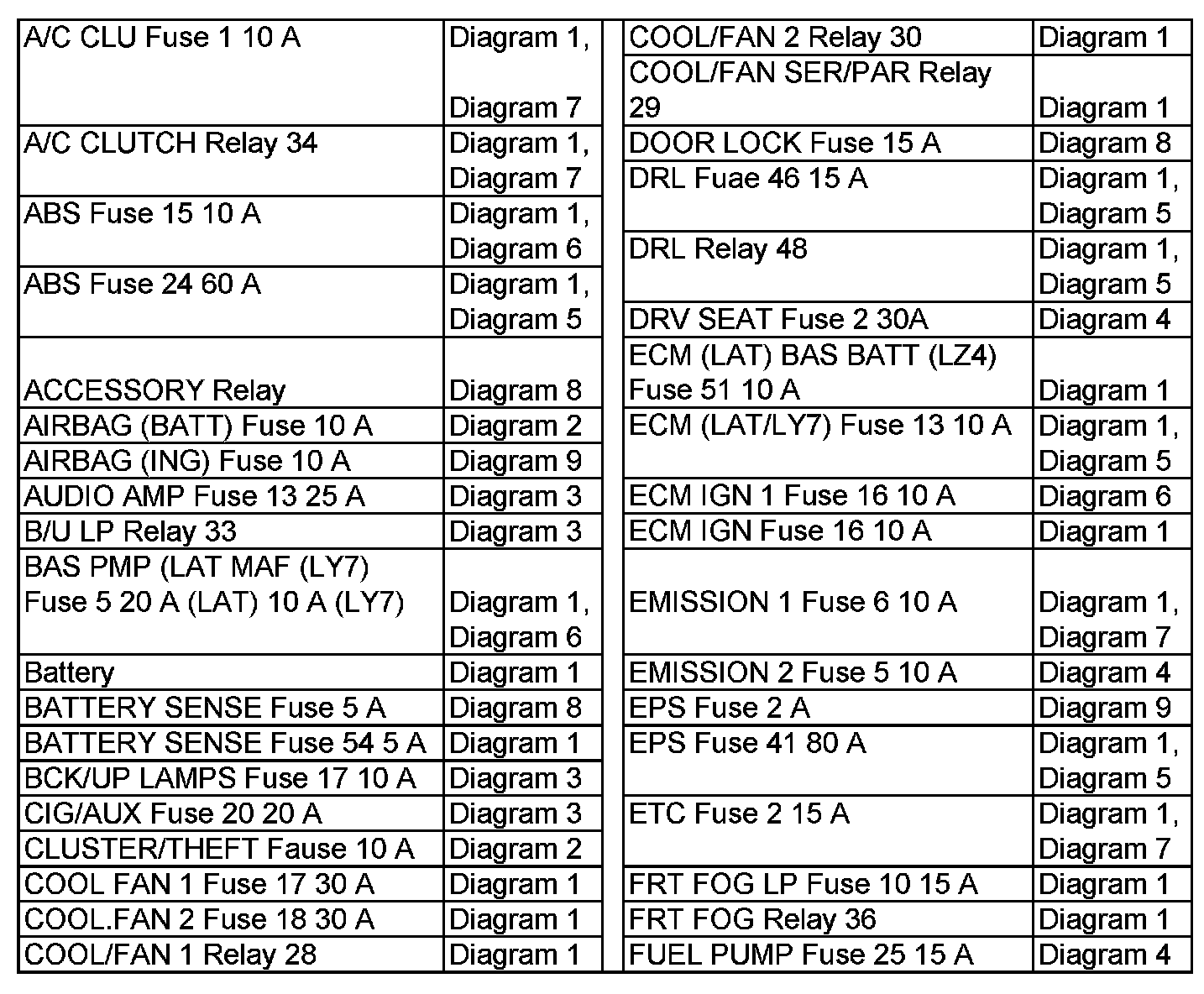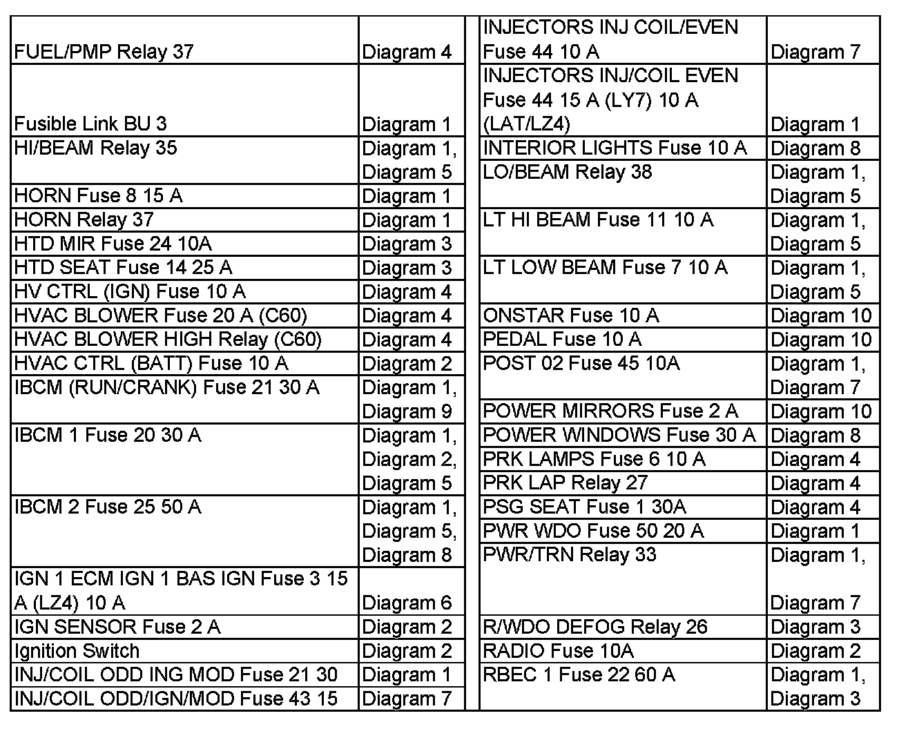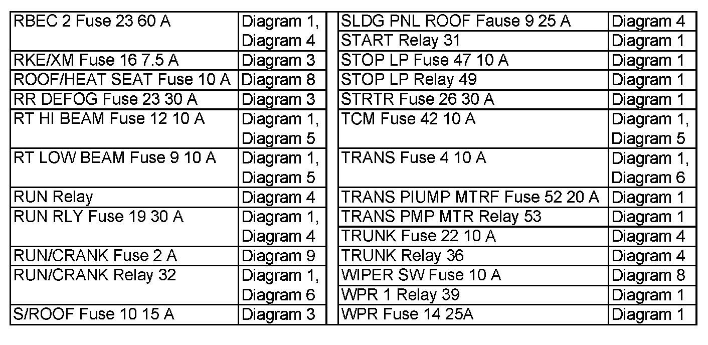 Power Distribution Diagram Index