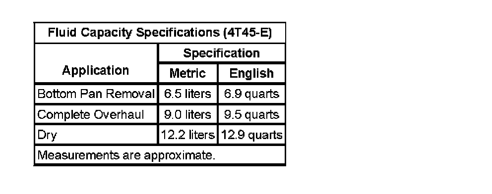 Fluid Capacity Specifications: