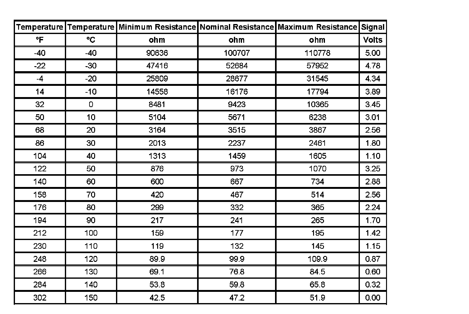 Transmission Fluid Temperature Sensor Specifications: