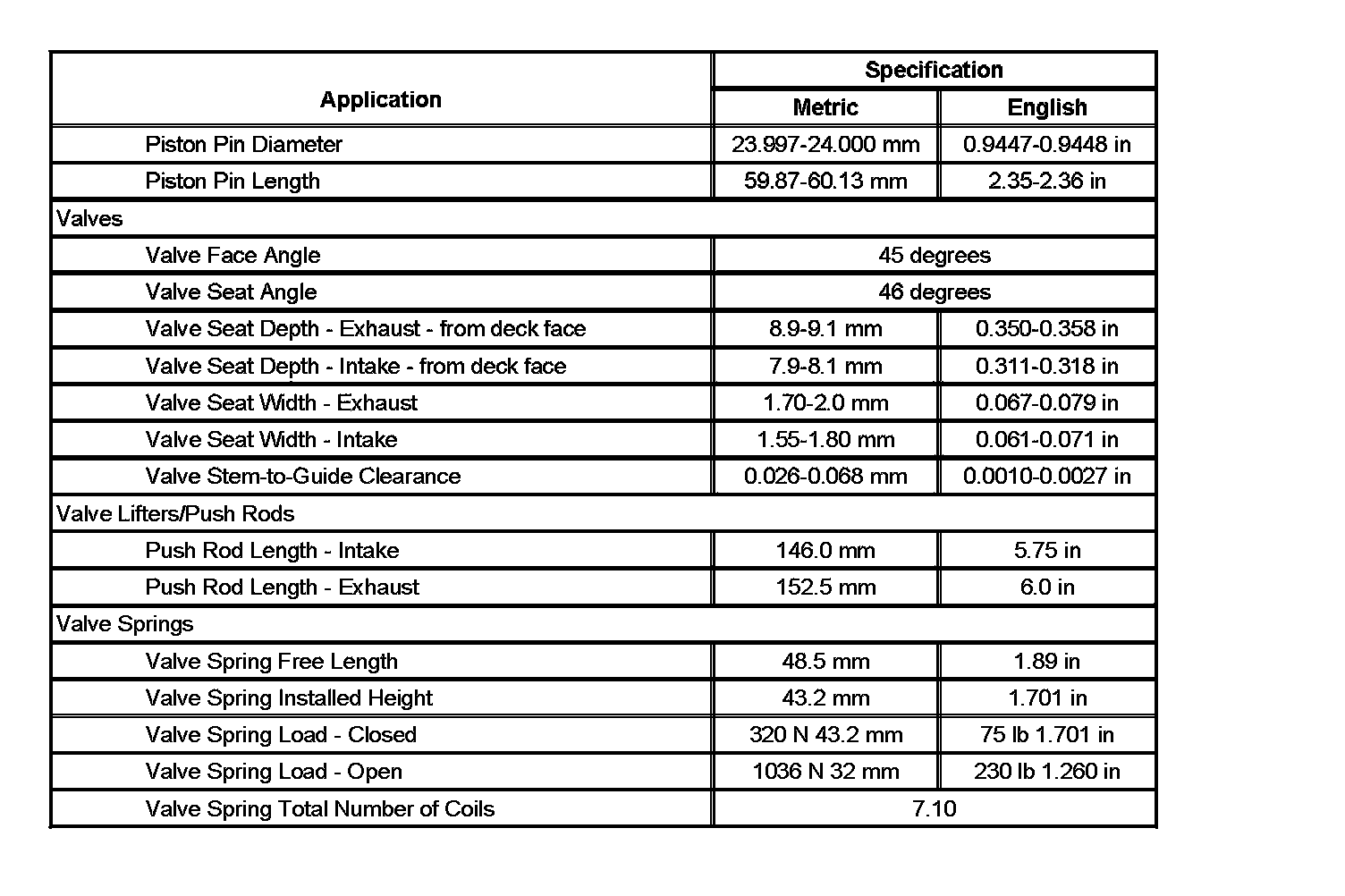 Engine Mechanical Specifications