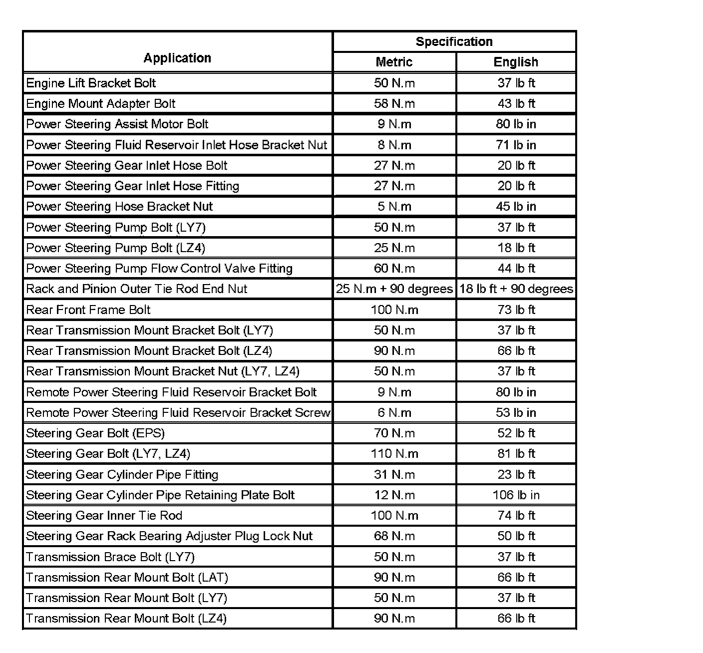 Fastener Tightening Specifications: