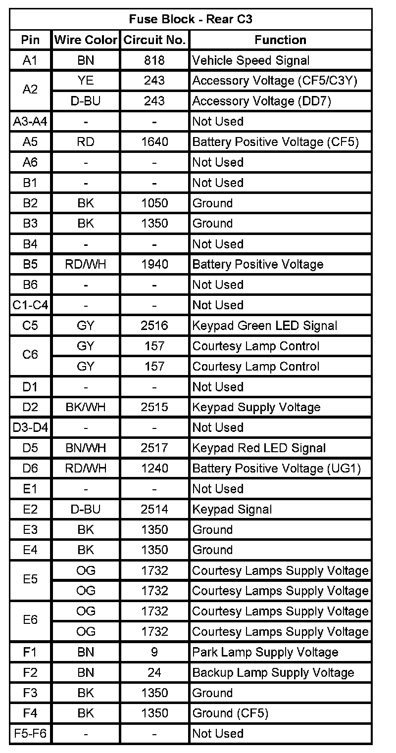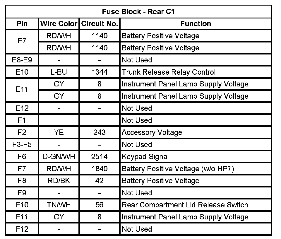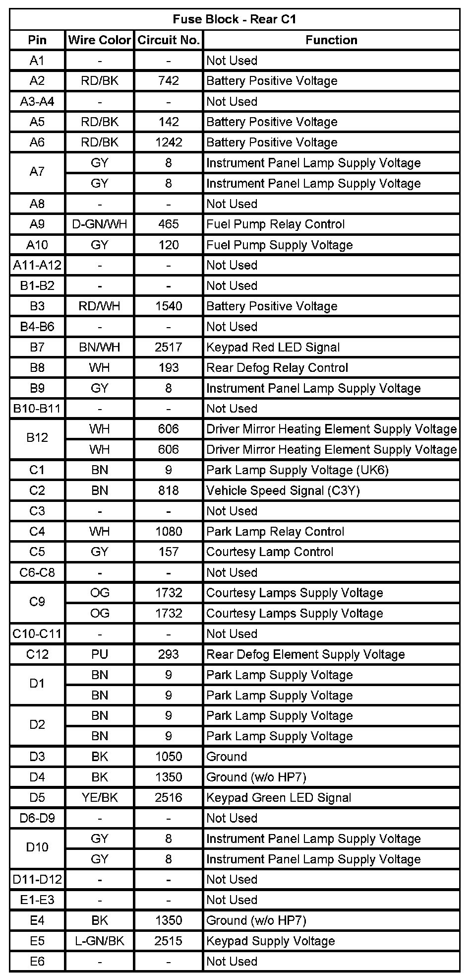 Fuse Block - Rear C1 (Pin E7 To F12):