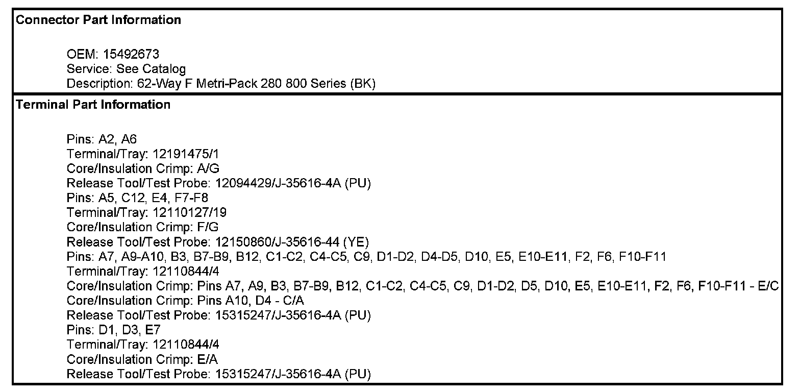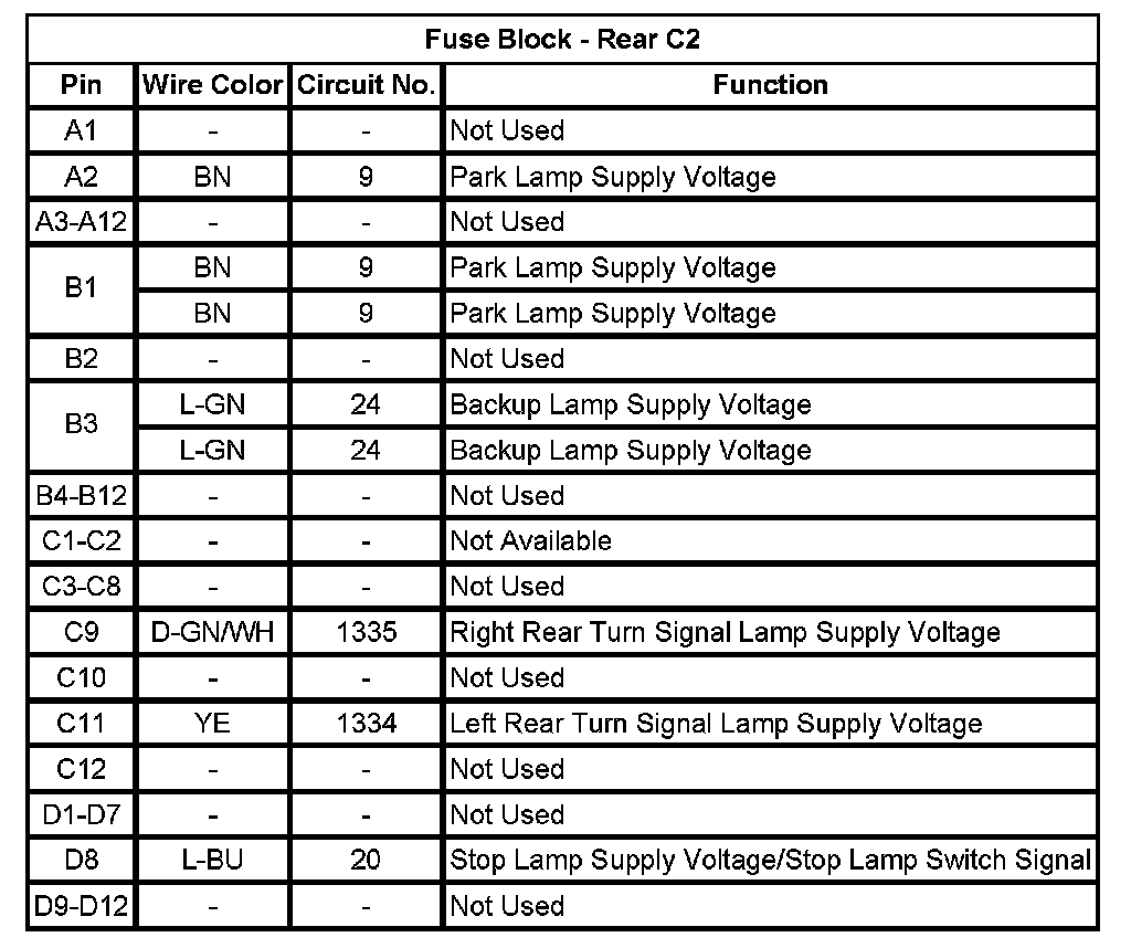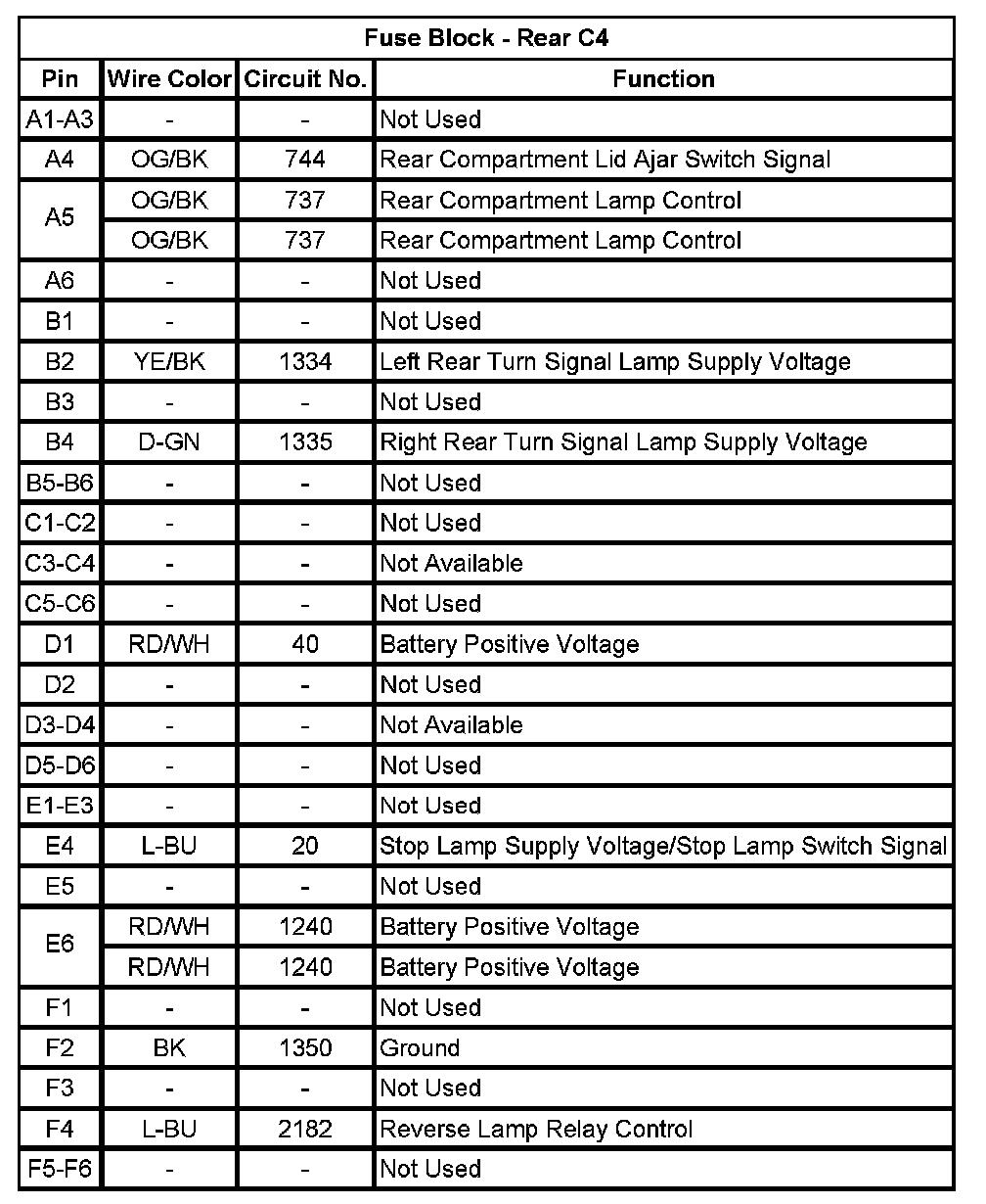 Fuse Block - Rear C1 (Pin E7 To F12):