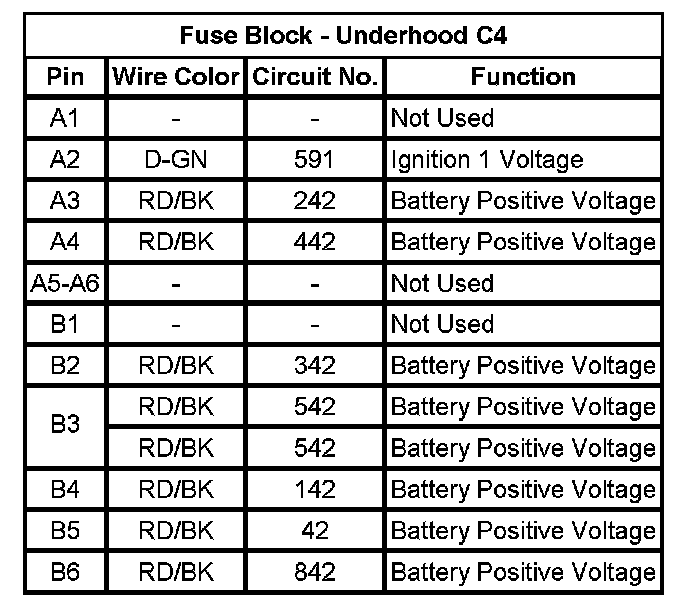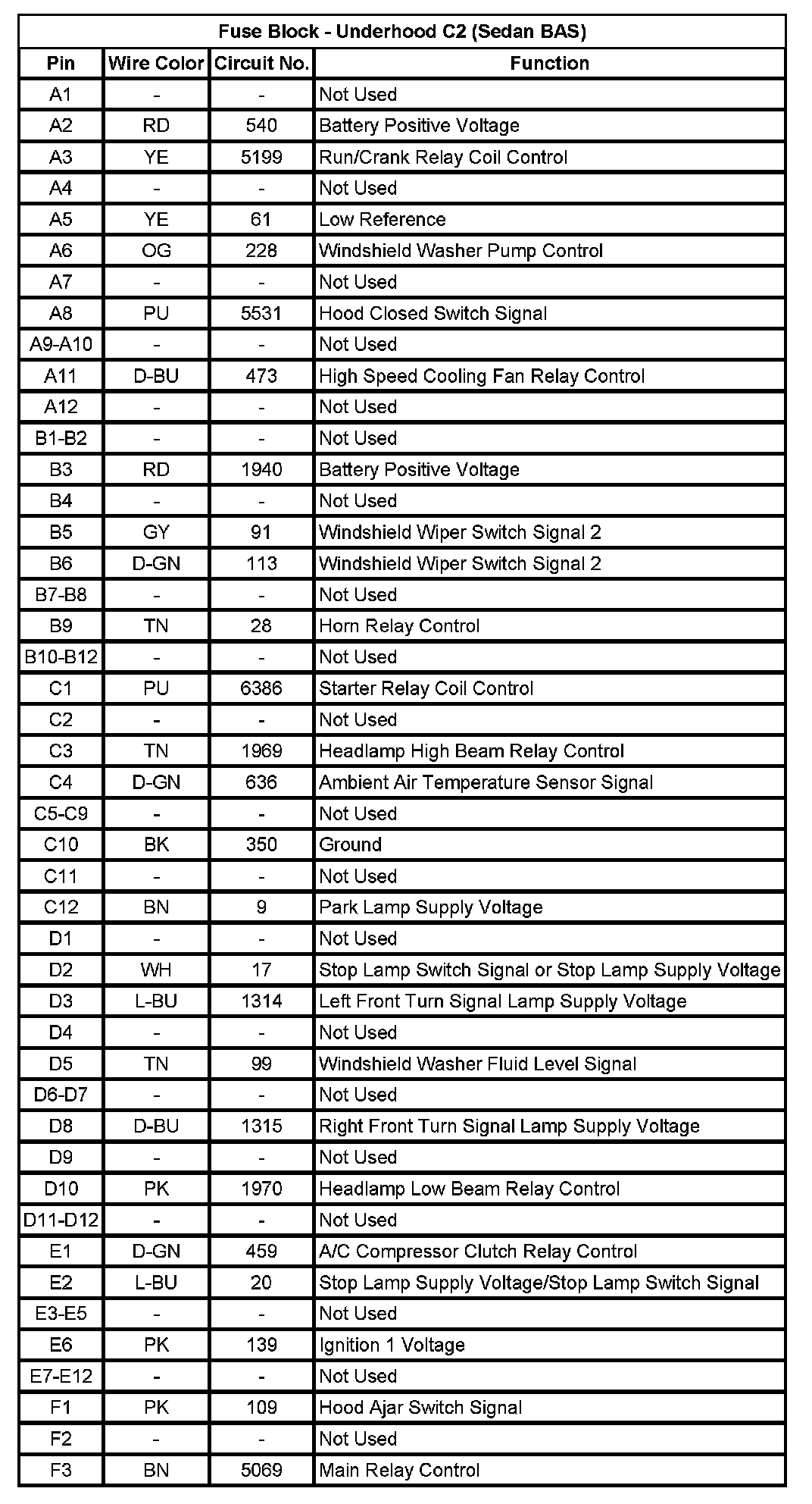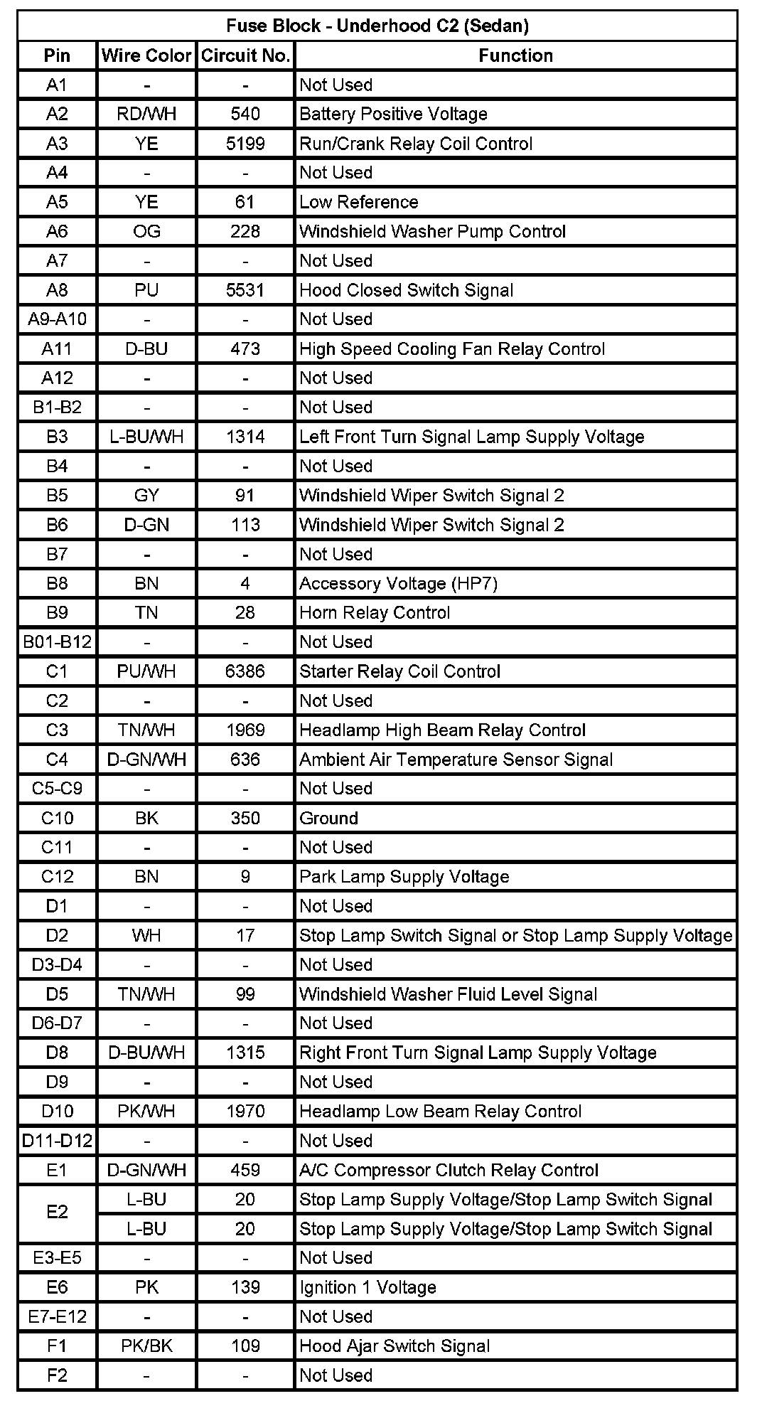 Fuse Block - Underhood C2 (Sedan) (Pin A1 To F2):