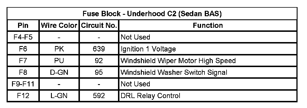 Fuse Block - Underhood C2 (Sedan BAS) (Pin F4 To F12):