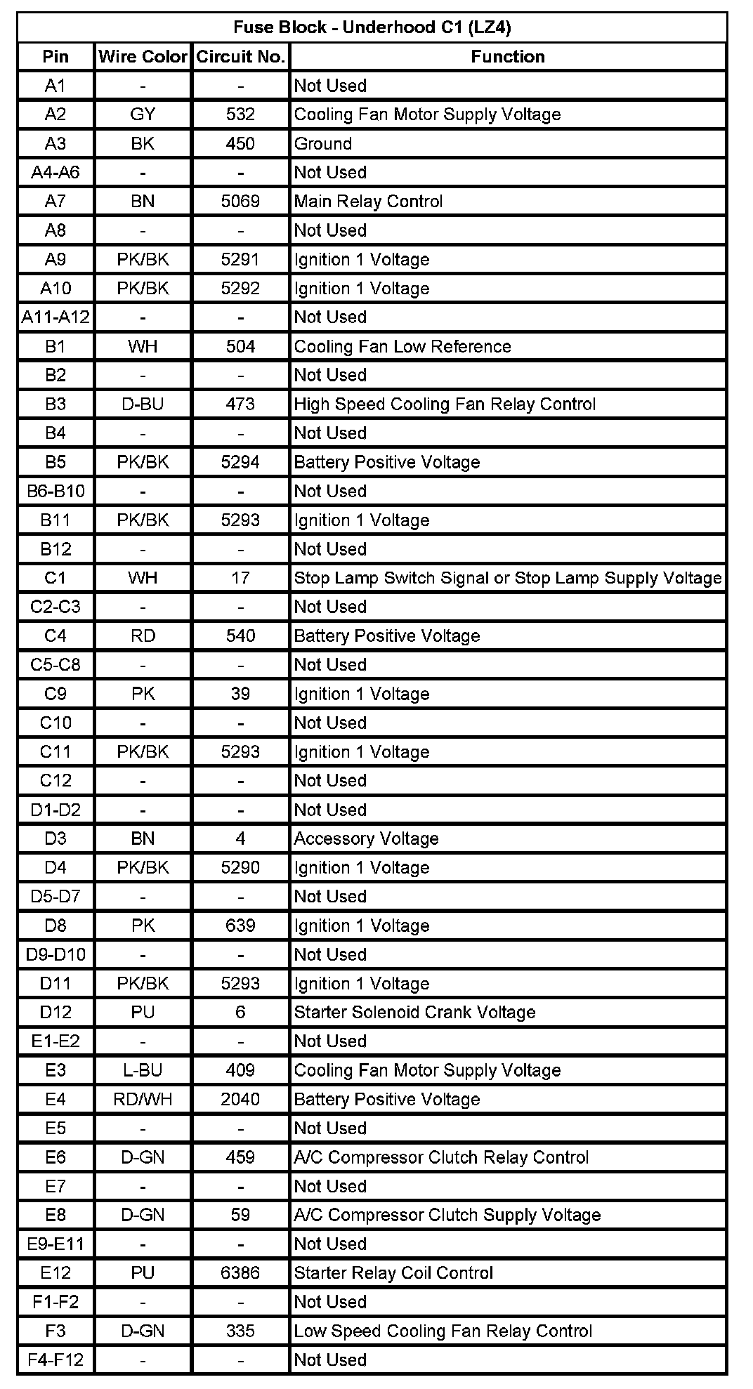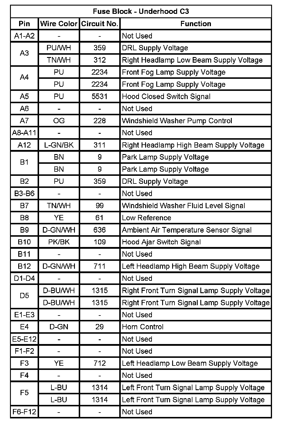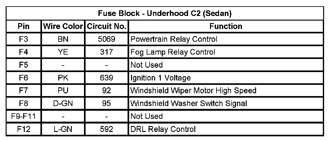 Fuse Block - Underhood C2 (Sedan) (Pin F3 To F12):