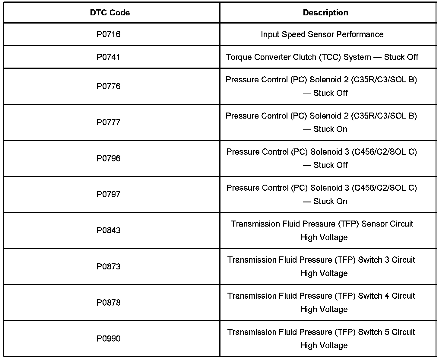 Some customers may comment on a check engine light and transmission performance issues with one of the DTC codes set.