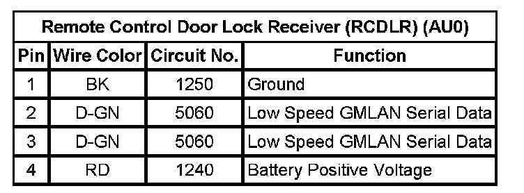 Remote Control Door Lock Receiver (RCDLR) (AU0)