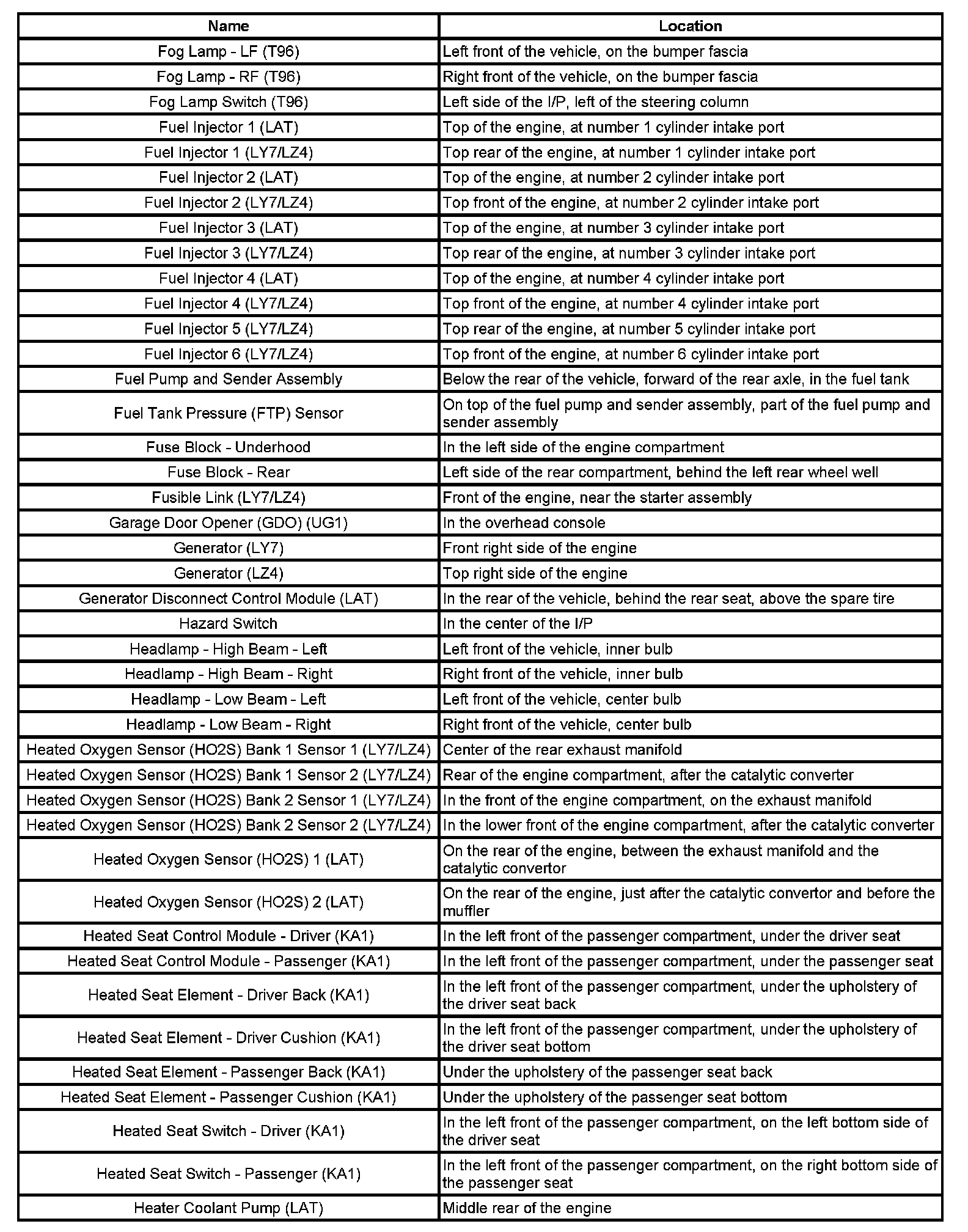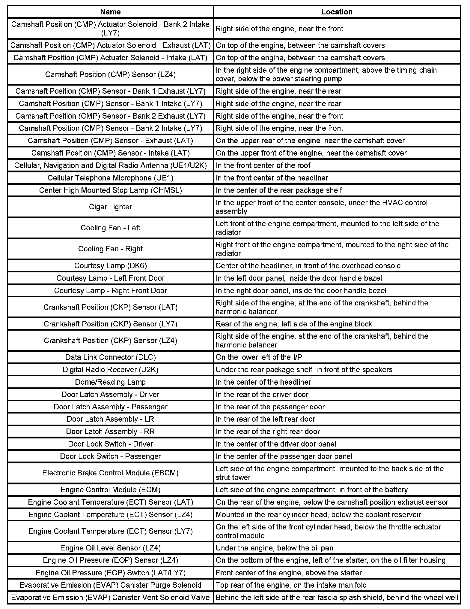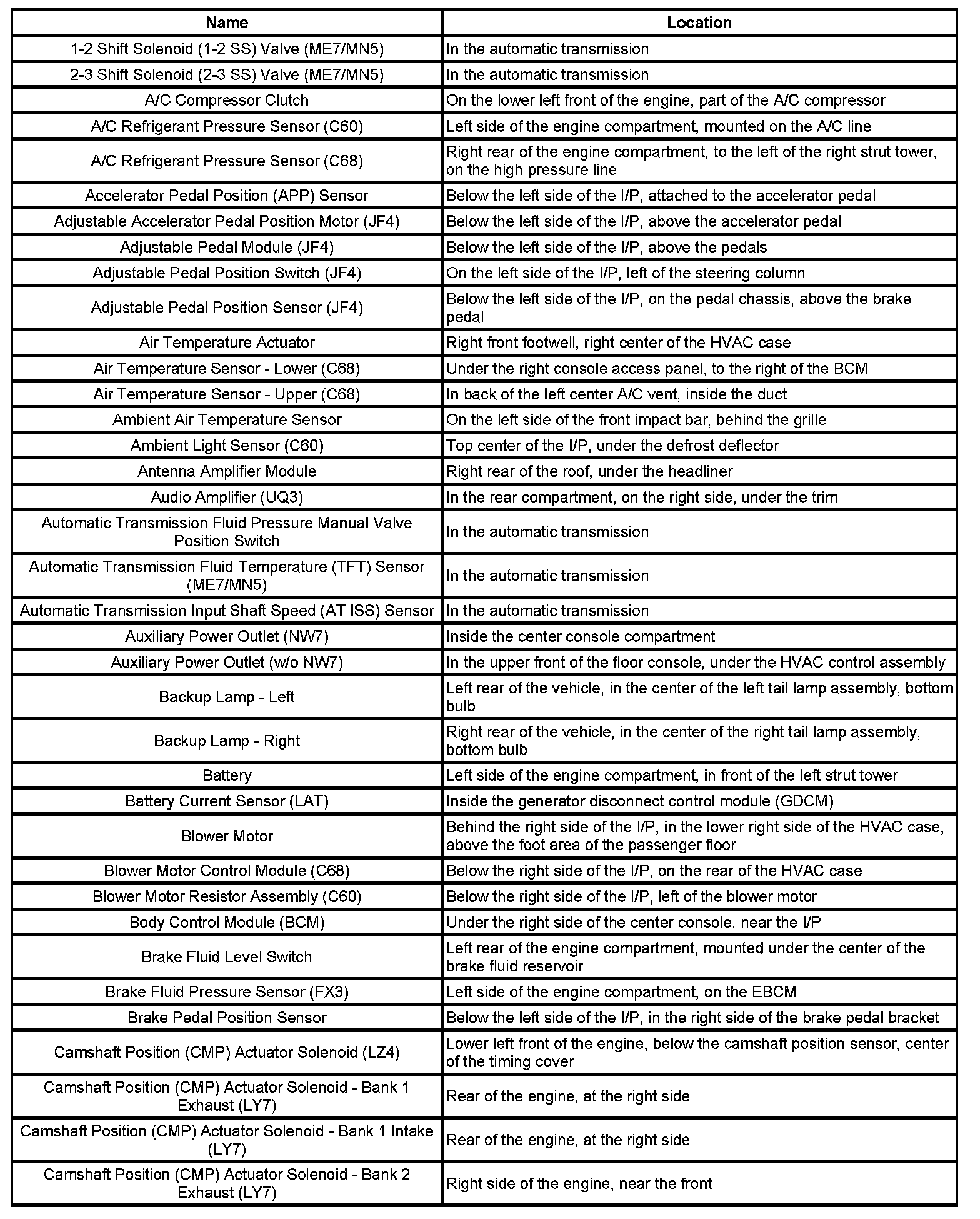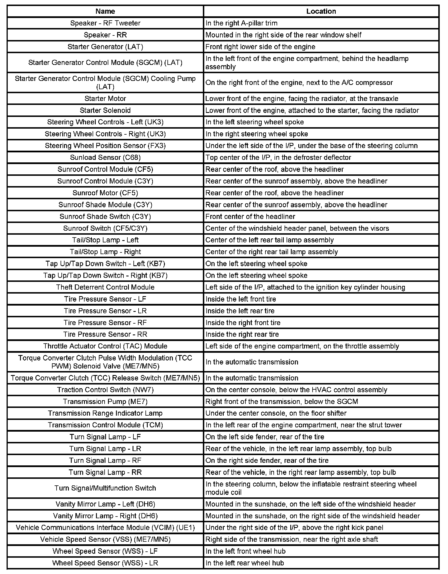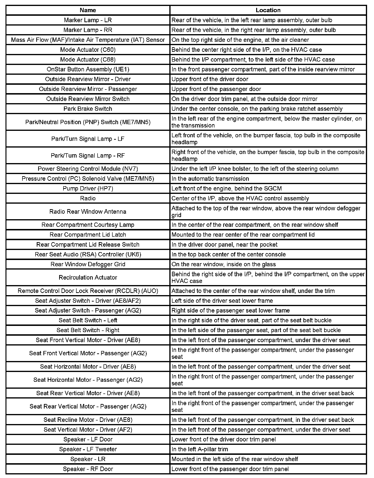 Master Electrical Component List