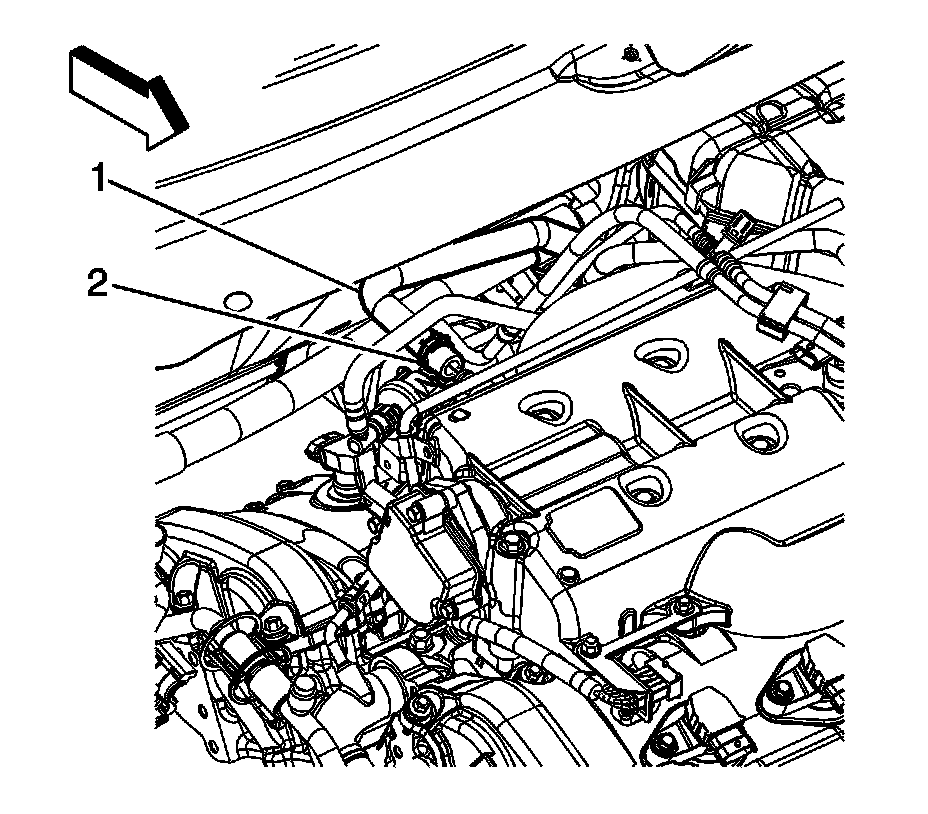 11. Remove the brake booster vacuum hose (2) from the upper intake manifold.