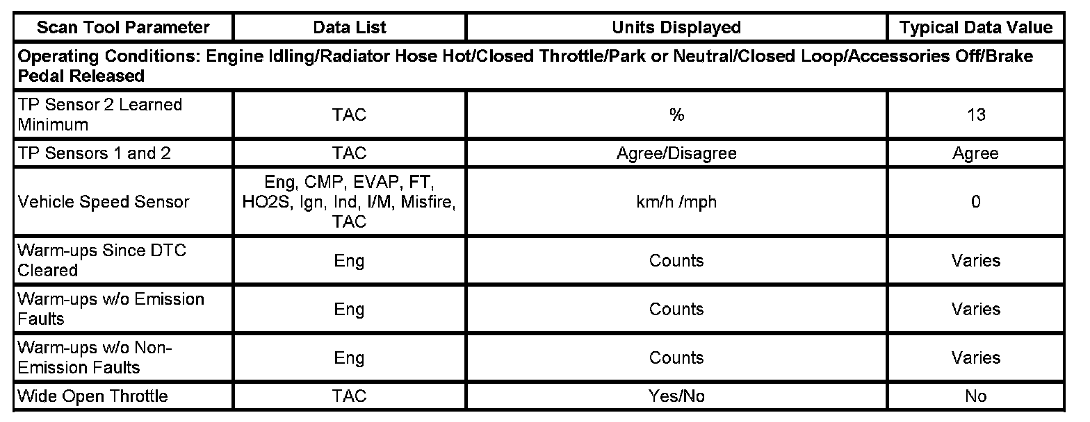 The Engine Scan Tool Data List contains all engine controls-related parameters that are available on the scan tool. The list is arranged in alphabetical order. A given parameter may appear in any one of the data lists, and in some cases may appear more than once, or in more than one data list in order to group certain related parameters together.