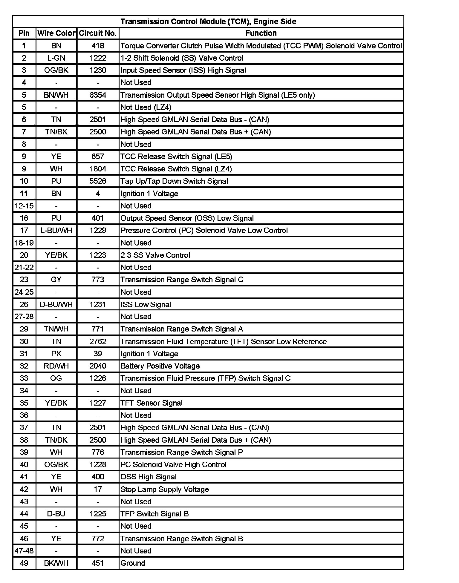Transmission Control Module (TCM), Engine Side:
