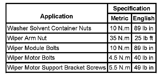 Wiper and Washer Systems: Specifications