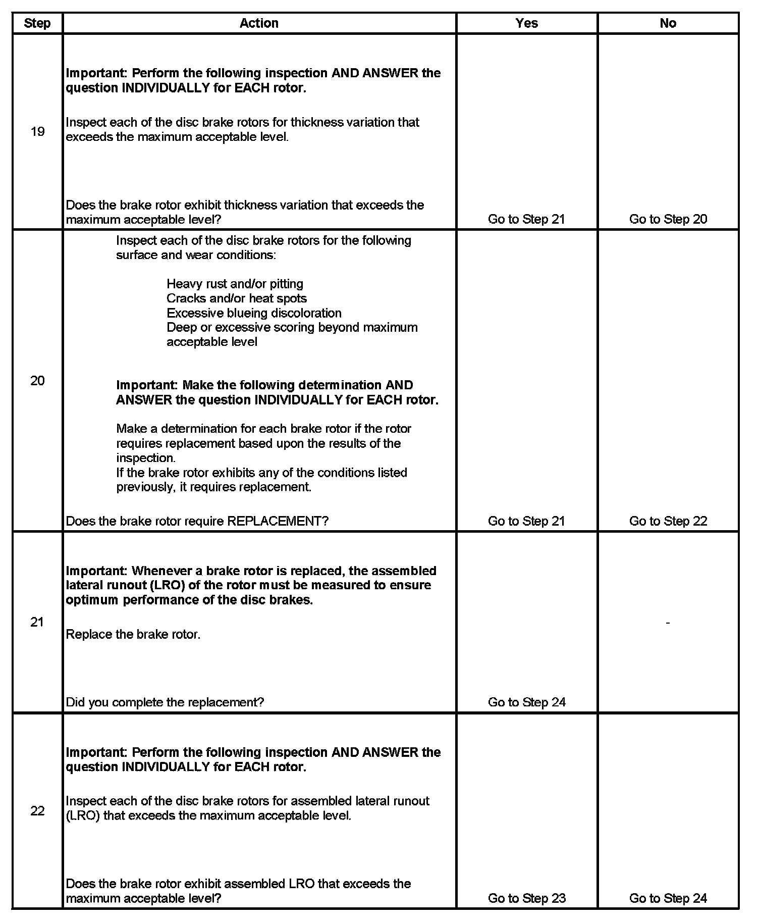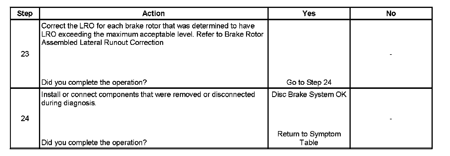 22. Disc brake rotor assembled lateral runout (LRO) that exceeds the maximum acceptable level can lead to thickness variation.